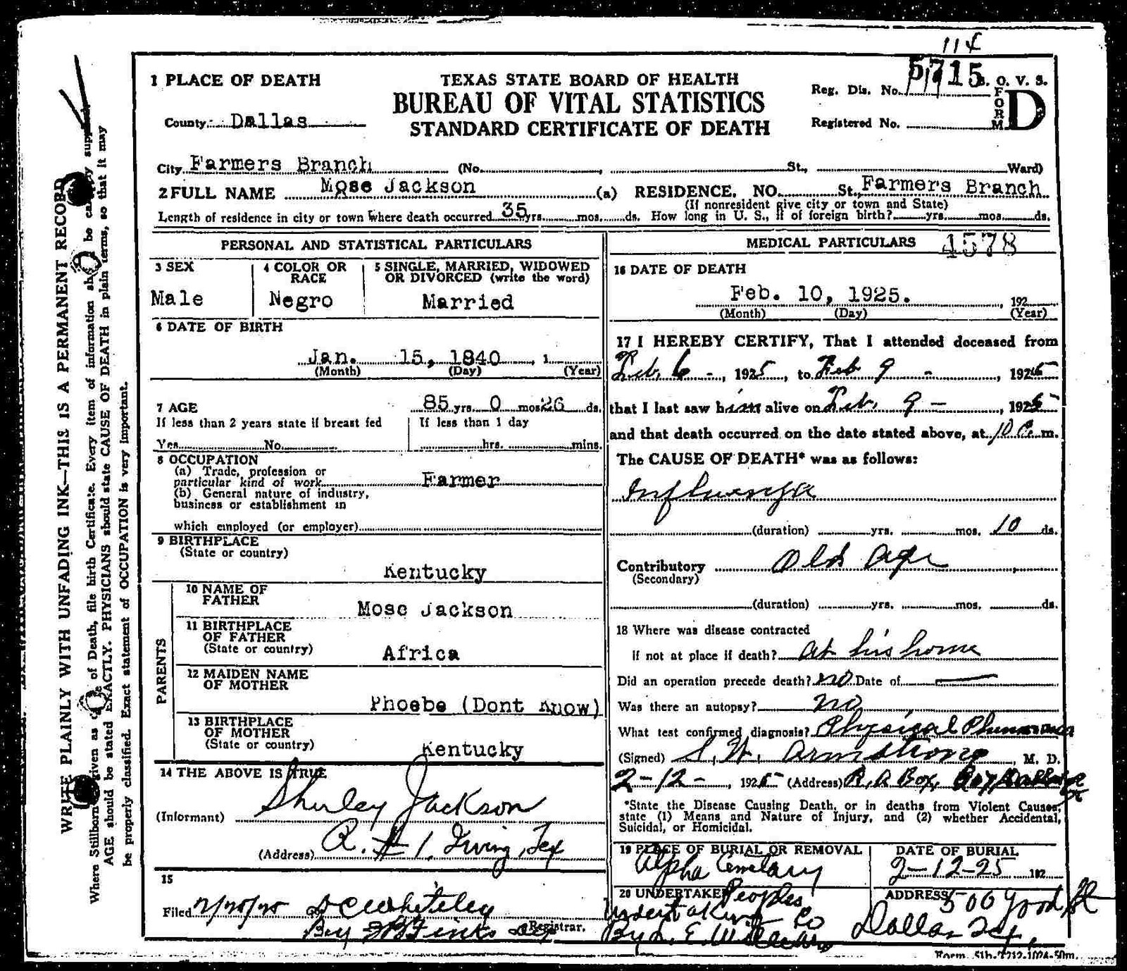 African-American farmer. Later owners respected the site and burials continued