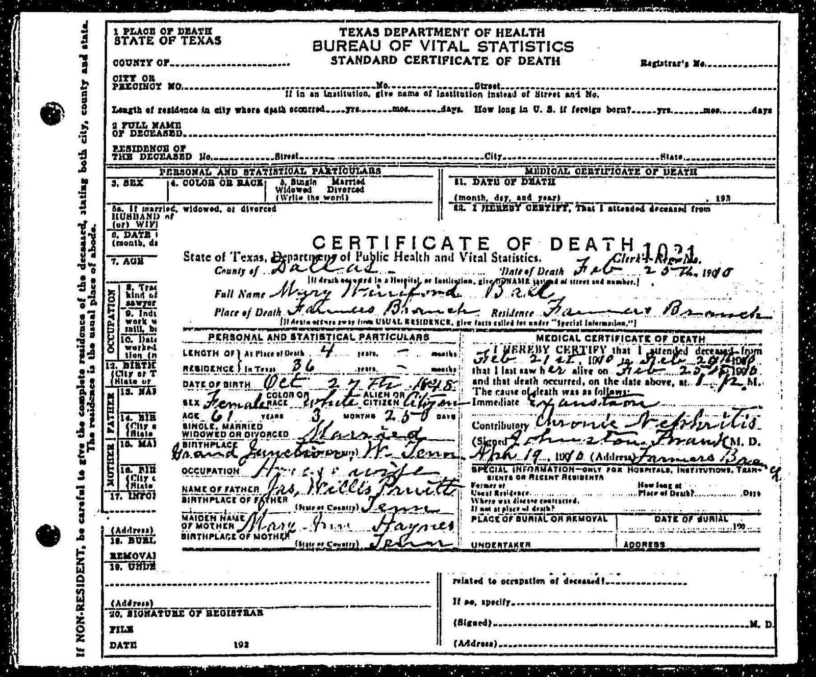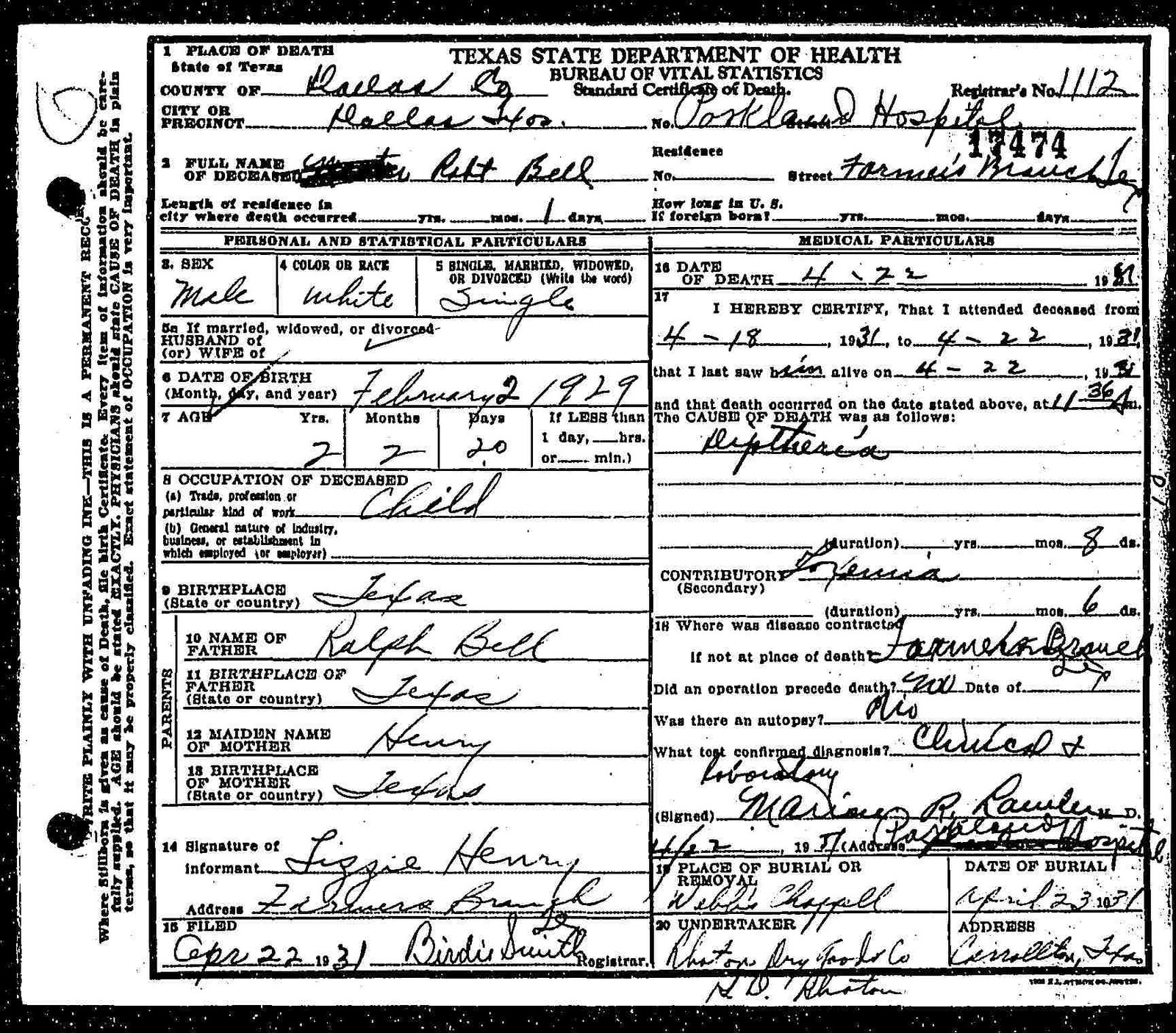 Death Certificate; Marker Photo