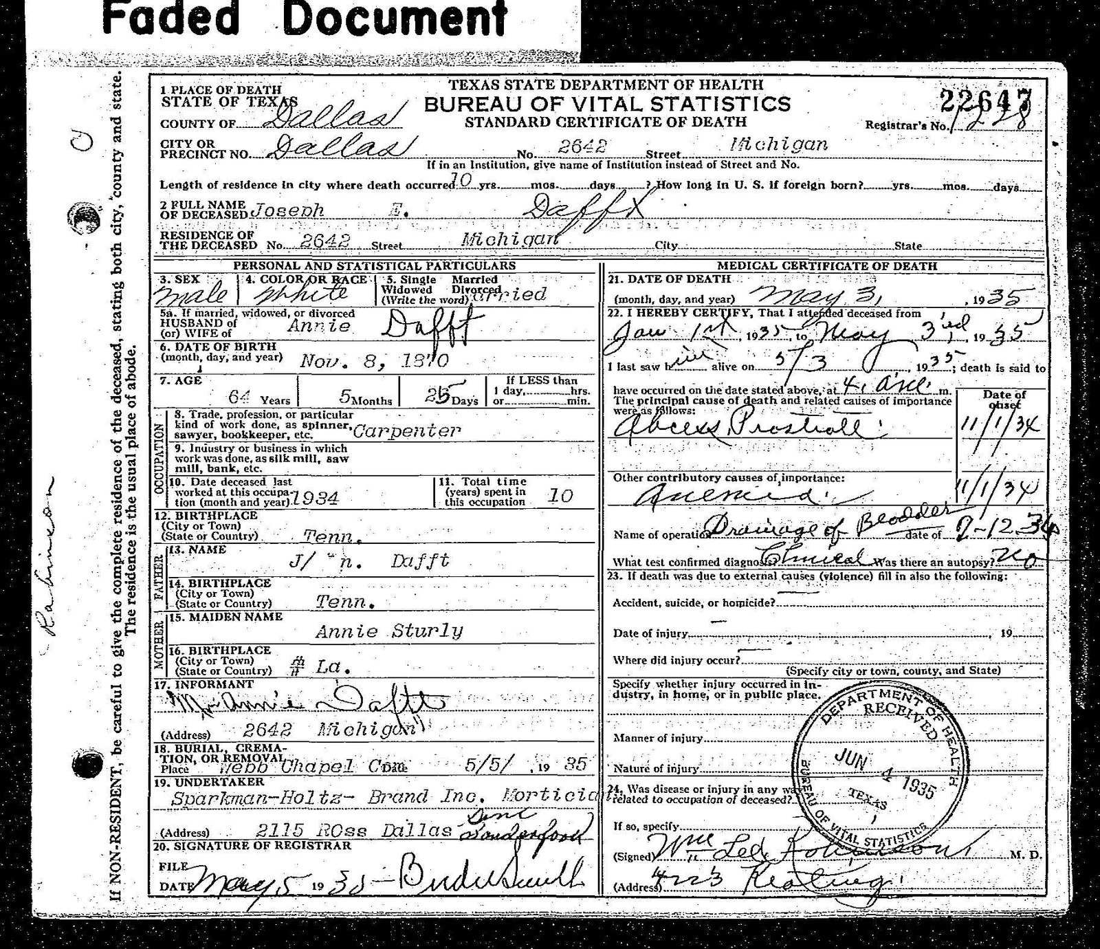 Biography, Obituary, Death Certificate, & Marker Photo |