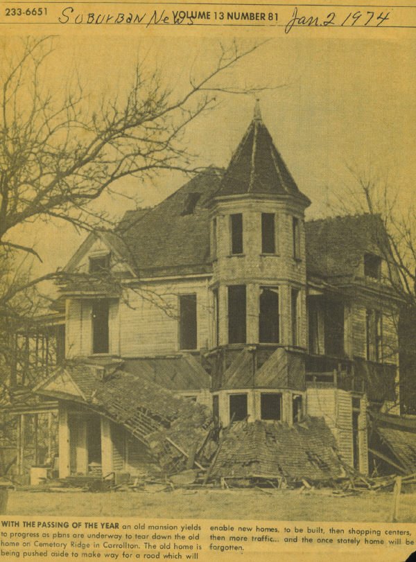 on Cemetery Ridge in Carrollton. The old home is being pushed aside