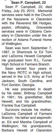 WELLINGTON - Sean P. Campbell, 22, died Friday, July 23, 2010.