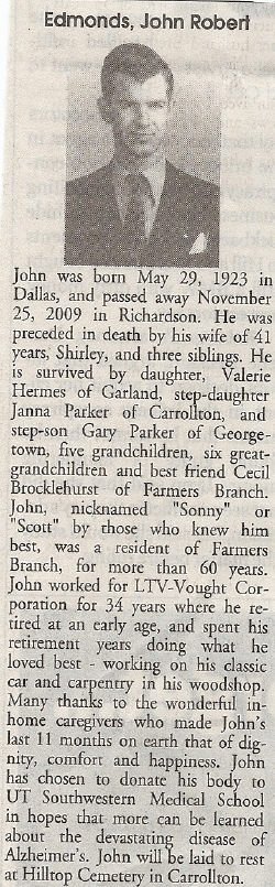Farmers Branch. John, nicknamed "Sonny" or "Scott" by those who knew him best,