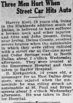 afternoon. They were treated at the Emergency Hospital and then taken to Baylor