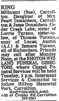 Millicent (Sue), Carrollton. Daughter of Mrs. Pearl Donaldson, Carrollton &