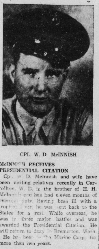 Cpl., W. D. McInnish and wife have been visiting relatives recently in