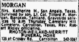 Mrs. Katherine H., San Antonio, Texas. Survived by son, Lt. Col. Tilford