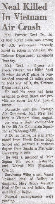 Burnett Neal Jr was a native of Dallas. He had attended Carrollton High School