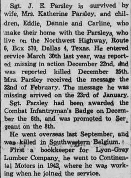 Sgt. Parsley had been awarded the Combat Infantryman's Badge on December the