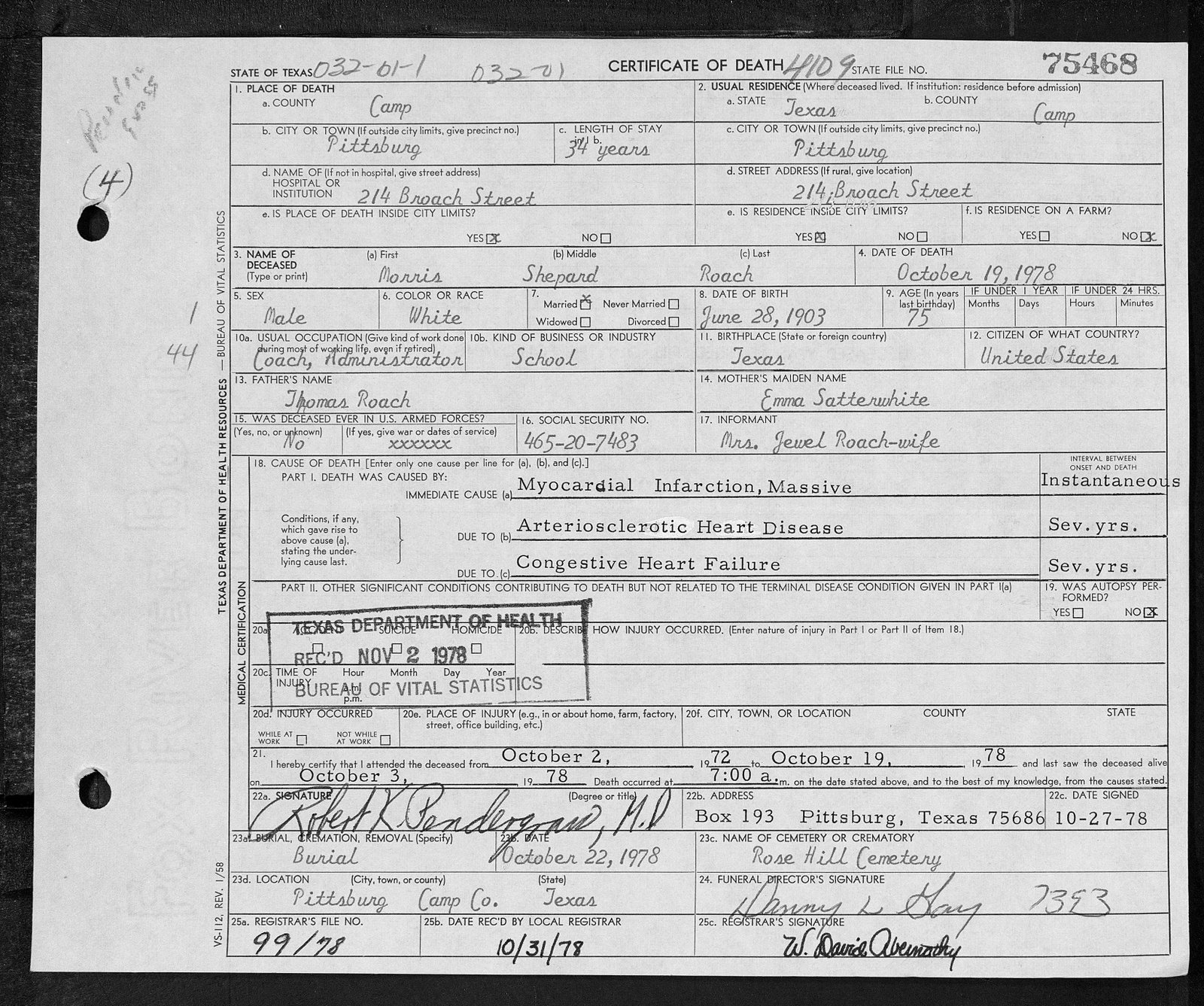 Coach and Superintendent of Schools, M. S. Roach, who came here seven