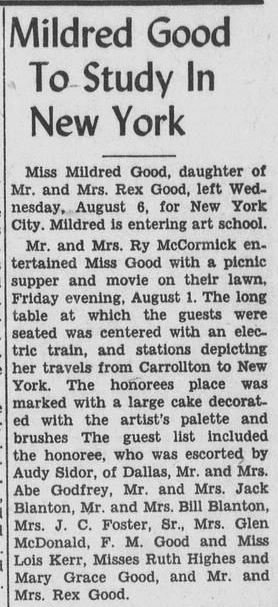 Rex Good, left Wednesday, August 6, for New York City. Mildred is entering