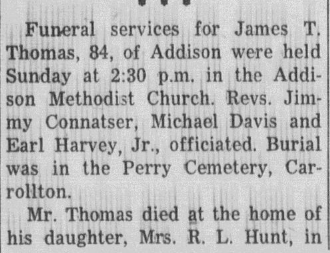 Funeral services for James T. Thomas, 84, of Addison were held Sunday at 2:30