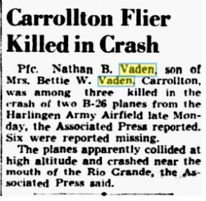 Pfc. Nathan B. Vaden, son of Mrs. Bettie W. Vaden, Carrollton, was among
