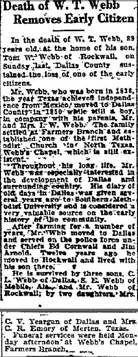 After farming for a number of years, Mr. Webb moved to Dallas and served on the