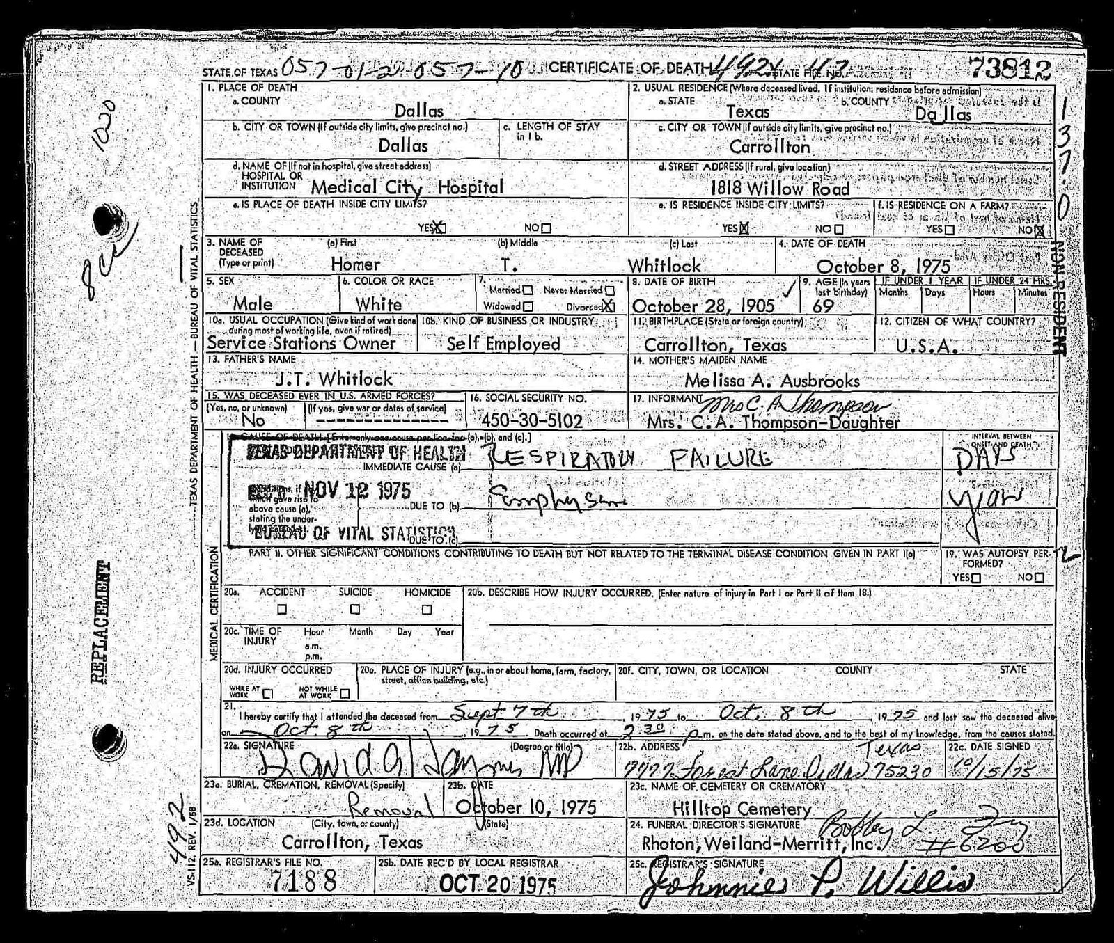 officiating. Interment Hilltop