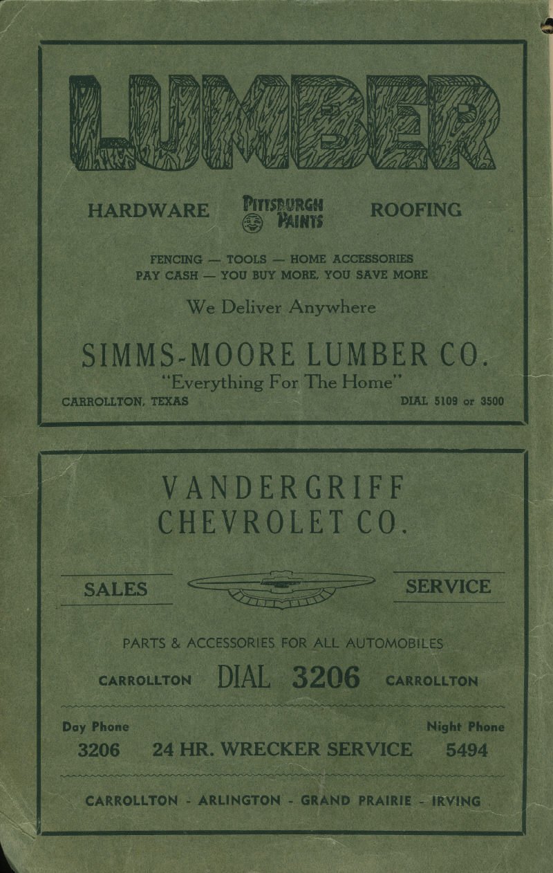 - Advertisements - Simms-Moore Lumber Co & Vandergriff Chevrolet Co