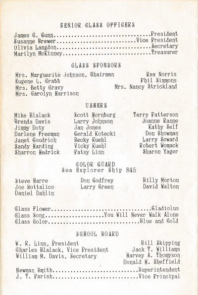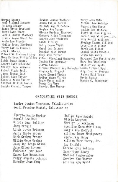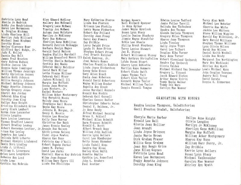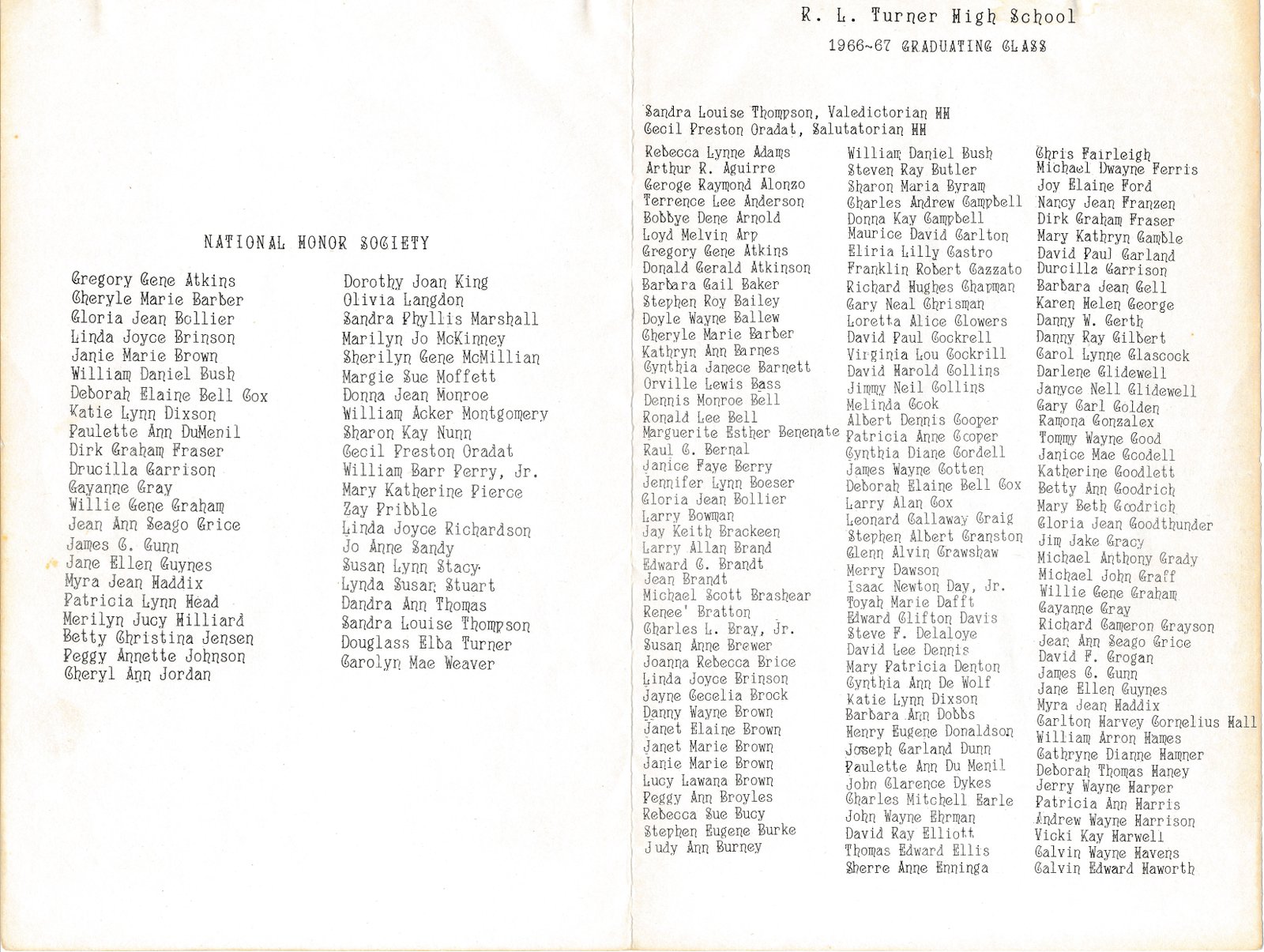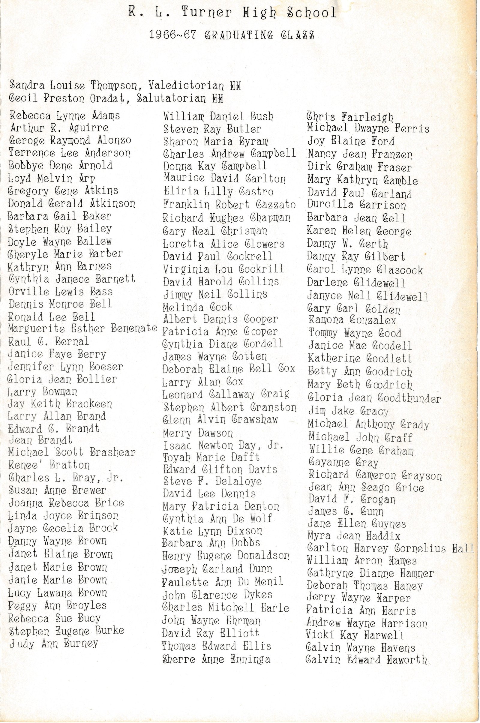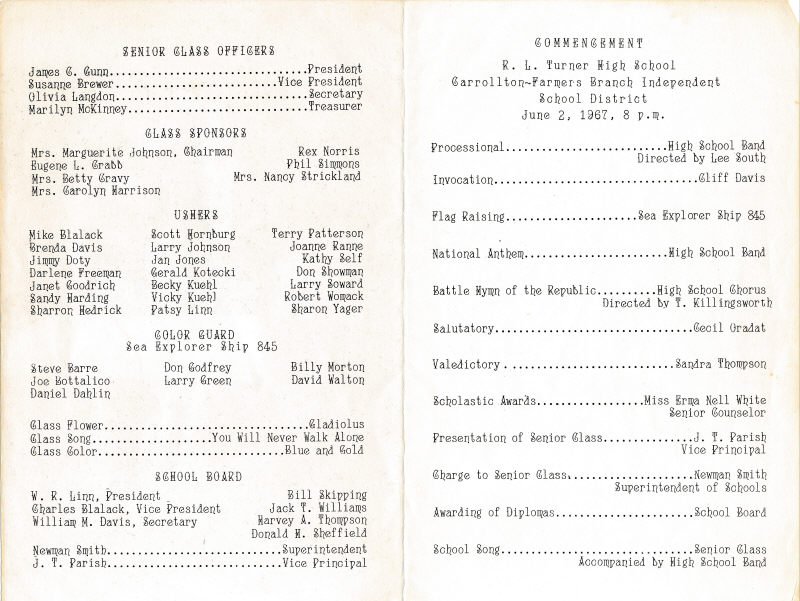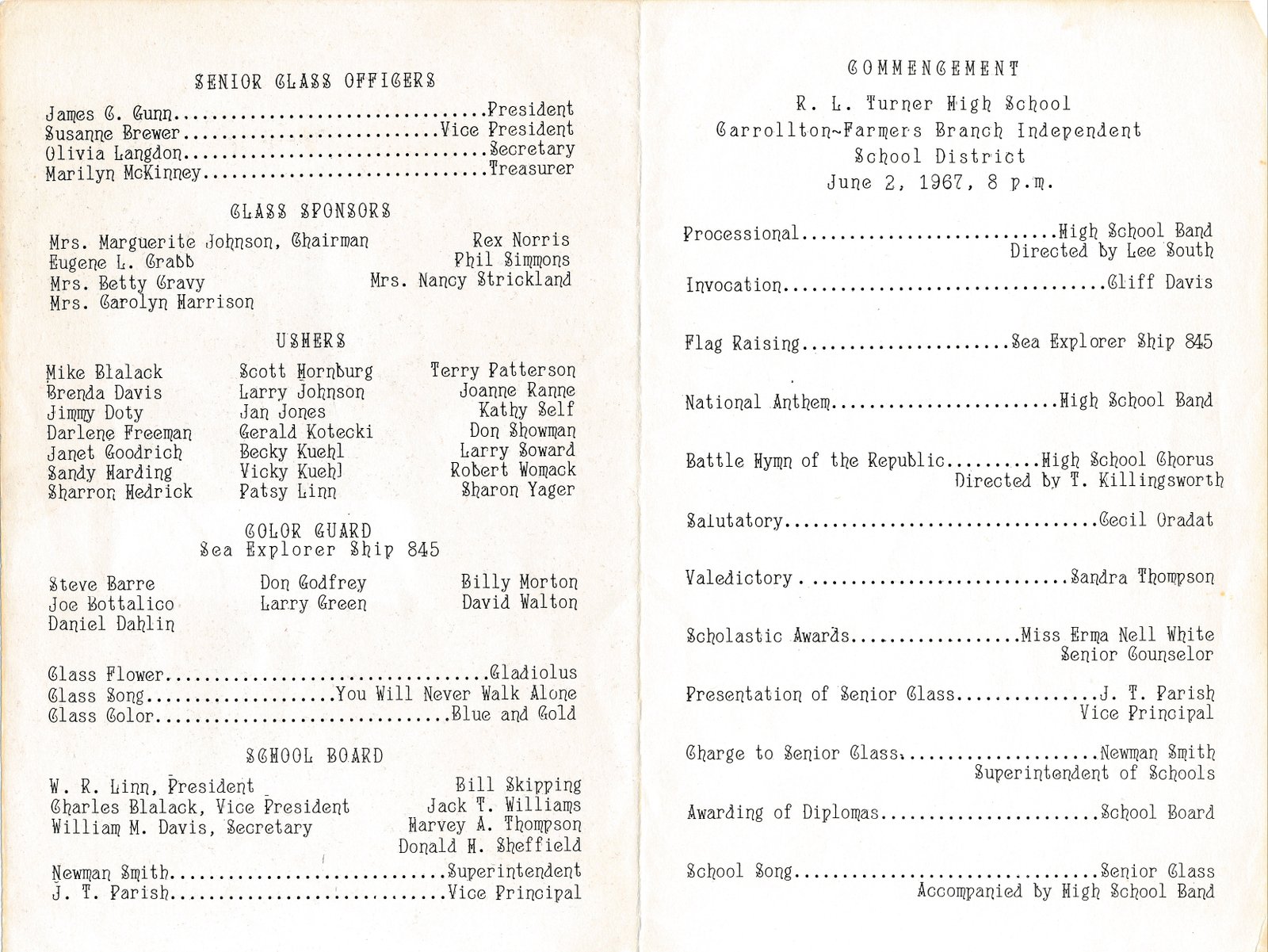 R. L. Turner High School 1967 Graduation Program Carrollton & Farmers Branch TXGenWeb