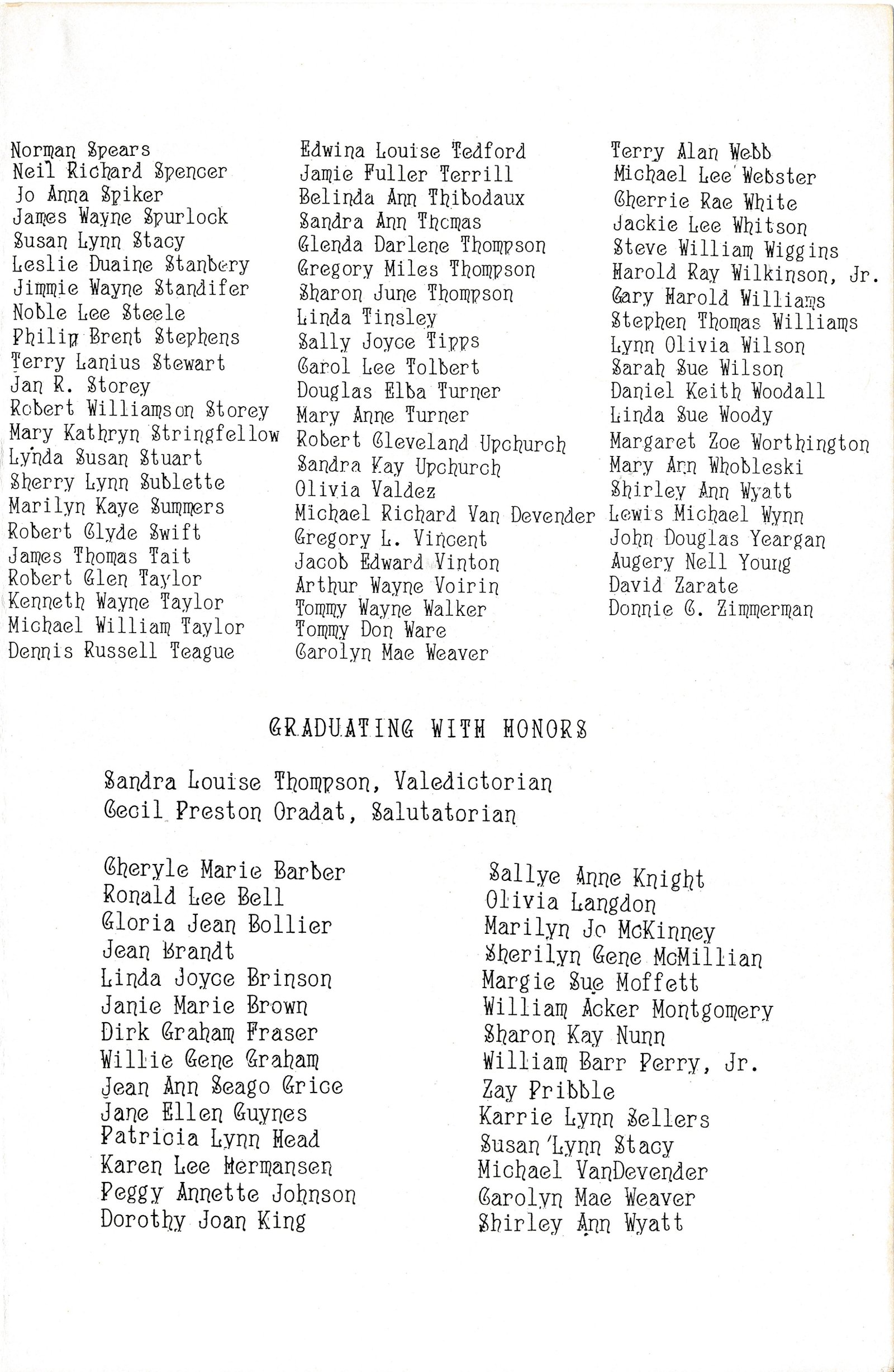 1967 R. L. Turner High School Graduation Program Submitted by Steven Butler