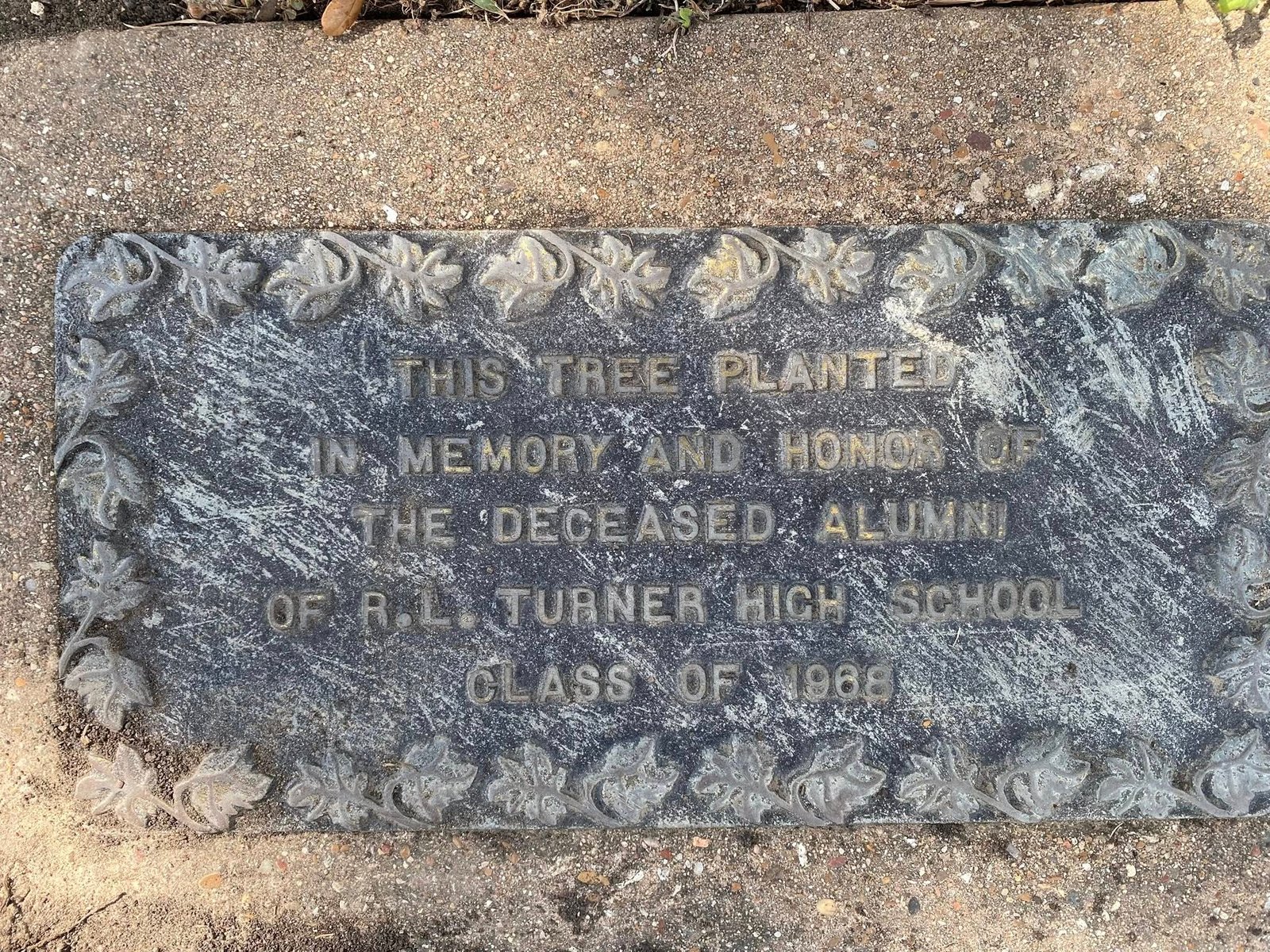 R. L. Turner High Class of 1868 Memorial Tree R. L. Turner High School Carrollton, Dallas County, Texas Carrollton & Farmers Branch TXGenWeb