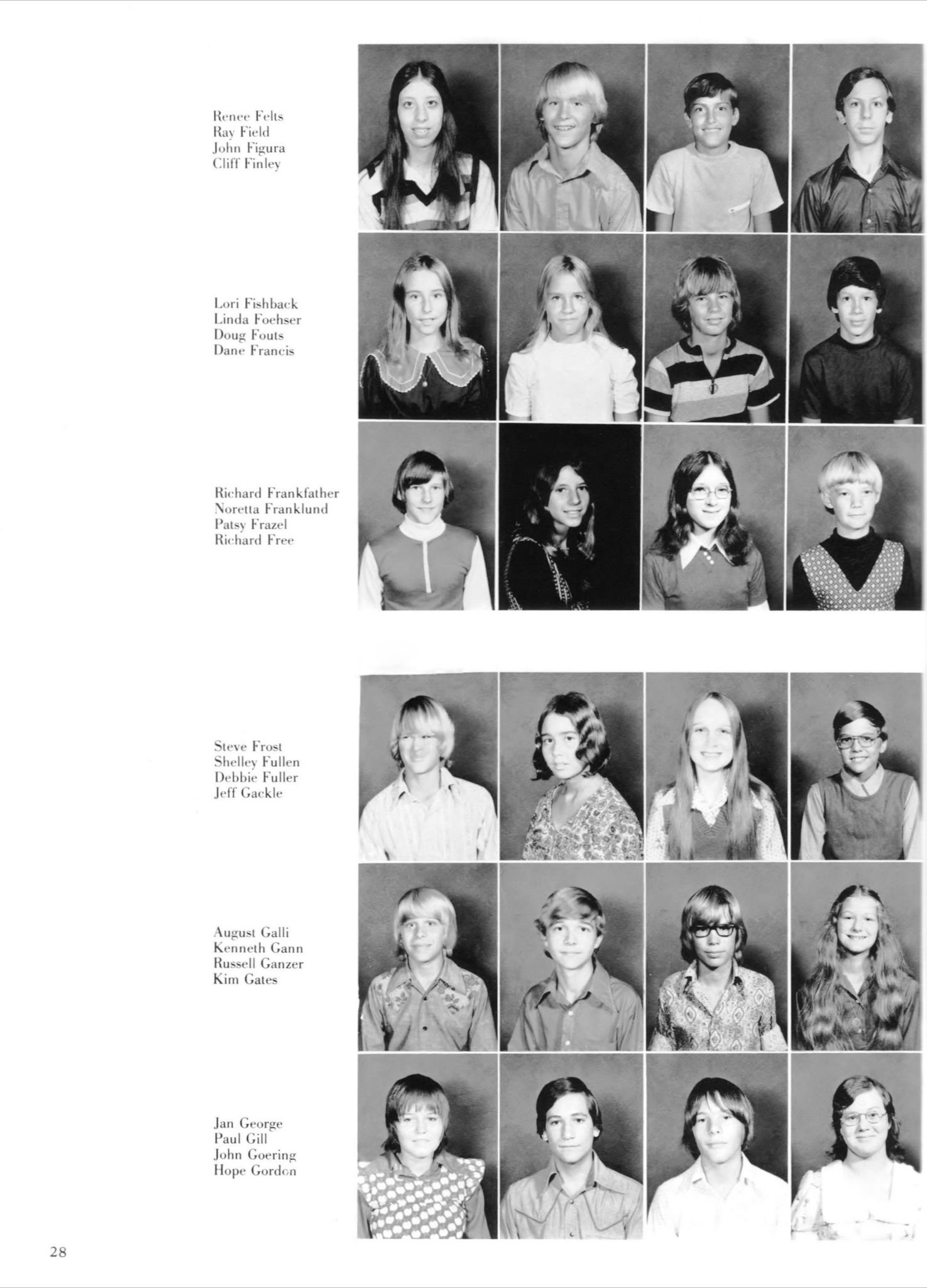 Franklund, Patsy Frazel, Richard Free, Steve Frost, Shelley Fullen, Debbie