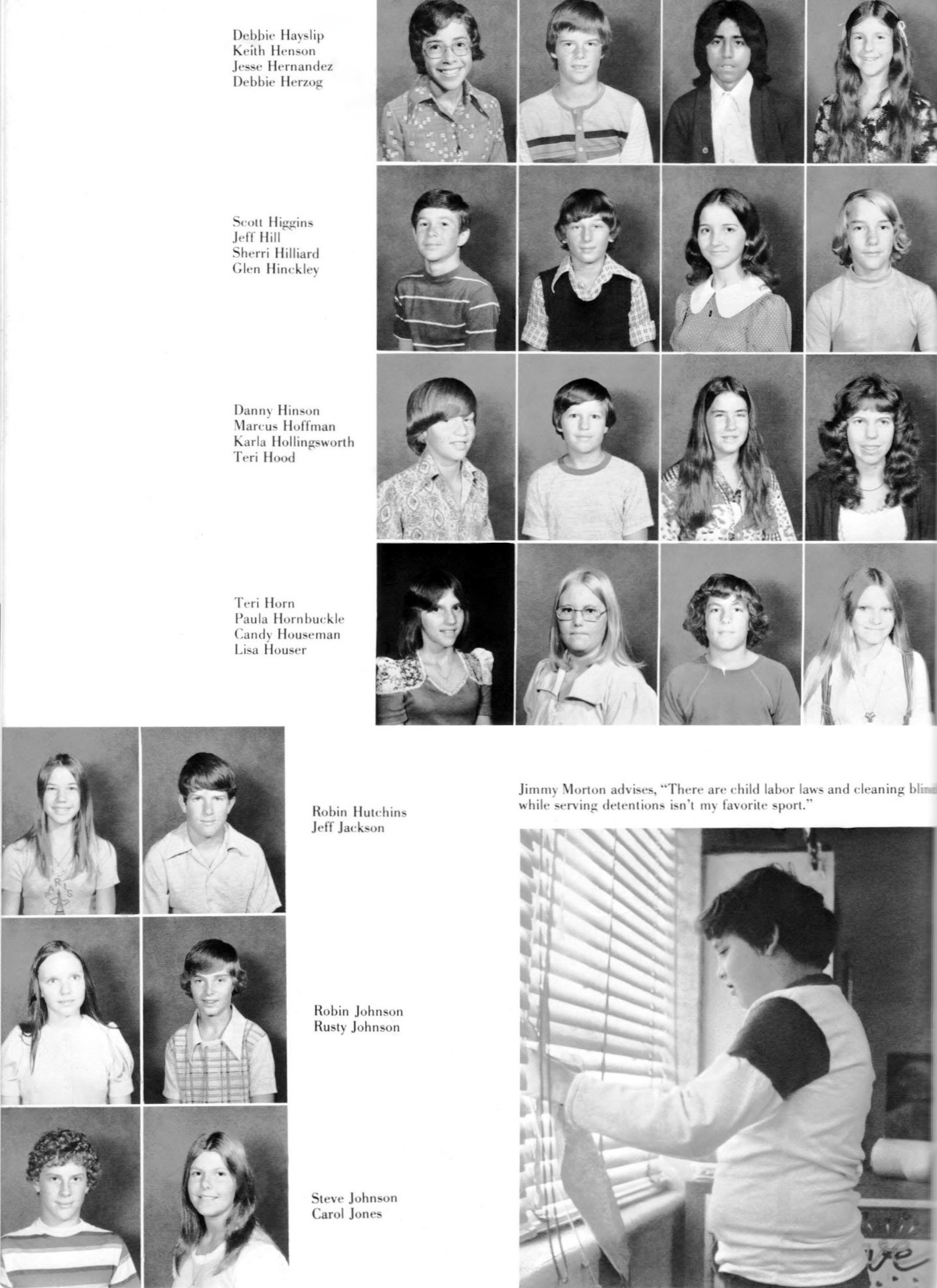 Seventh Grade: Debra Whisehunt, Jeanie Whitaker, Jay Whitaker, Michelle