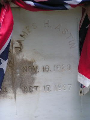 James H. Astin died October 17, 1897 and is buried at the Bryan City Cemetery in