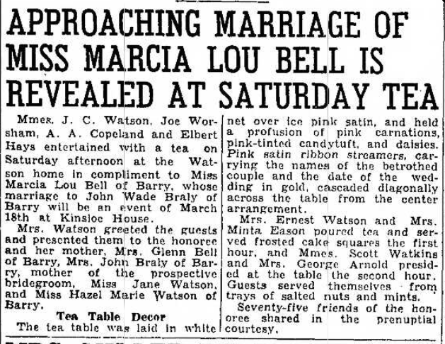 Marcia Lou (Bell) Braly Navarro County, Texas