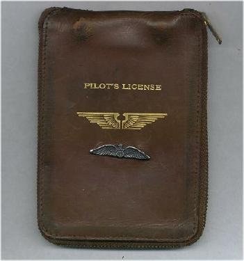 a leather wallet with gold embossed wing logo and the title, "Pilots