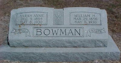 Sarah Annie Couch Bowman was the d/o Jesse Pinkney Couch and Nancy Catherine Raines. She and William were killed in the tornado that hit Frost, Texas on May 6, 1930. Frost Cemetery, Frost, Navarro Co., TX