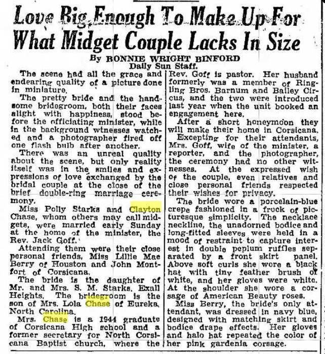 She met her future husband, Clayton Chase, when the Ringling Brothers