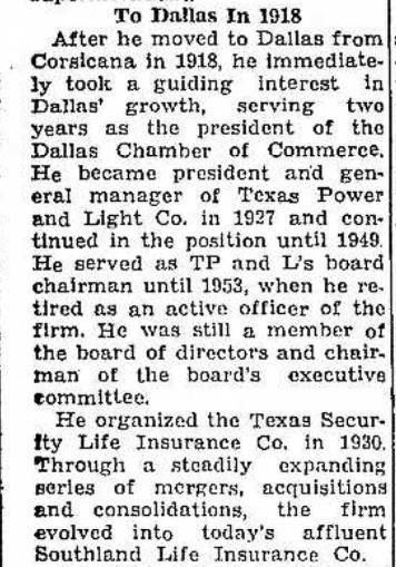 Honorary pallbearers were officers and directors of the Southland Life Insurance