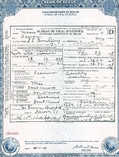 Co.) He was one of the first people to pay for his home in Dawson, Texas with