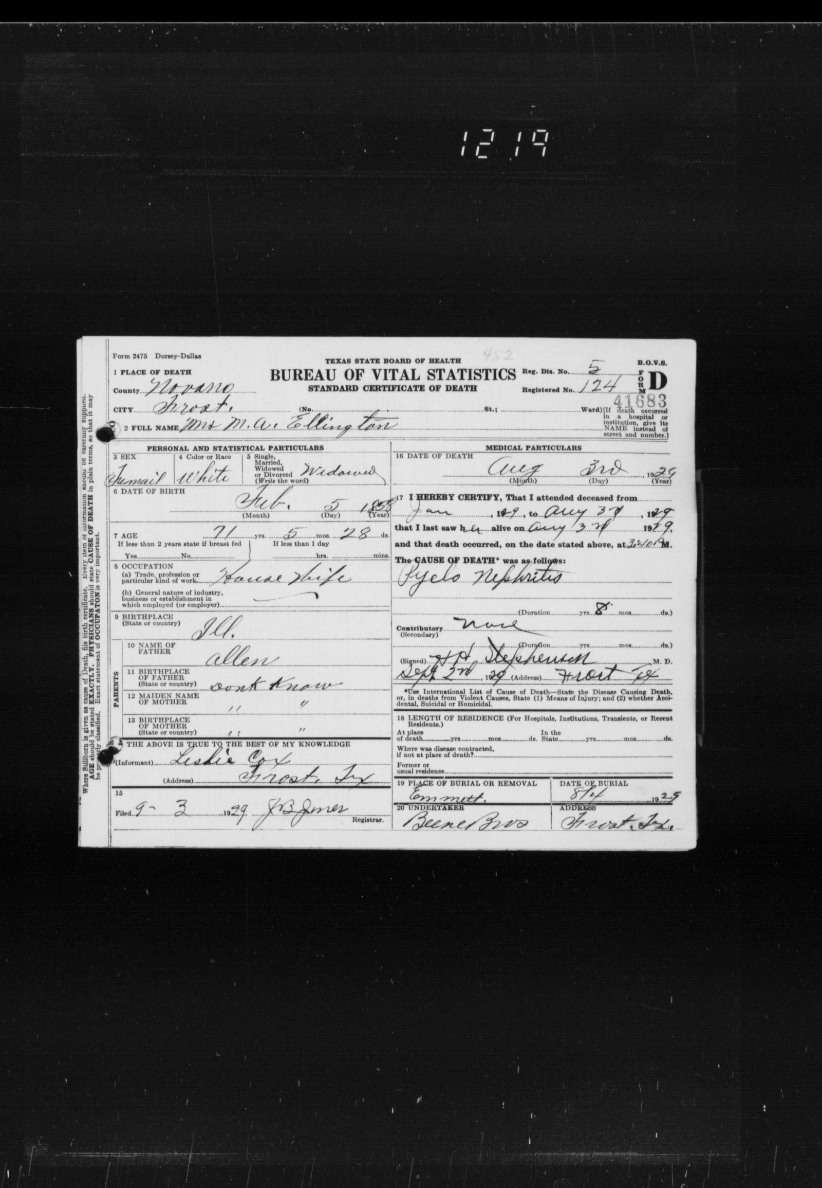 Mrs. J. A. Ellington (nee Annie Allen) was married to Joseph A. Ellington