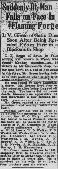 Green, of Satin, in Falls County, well known in Waco, was found Monday morning