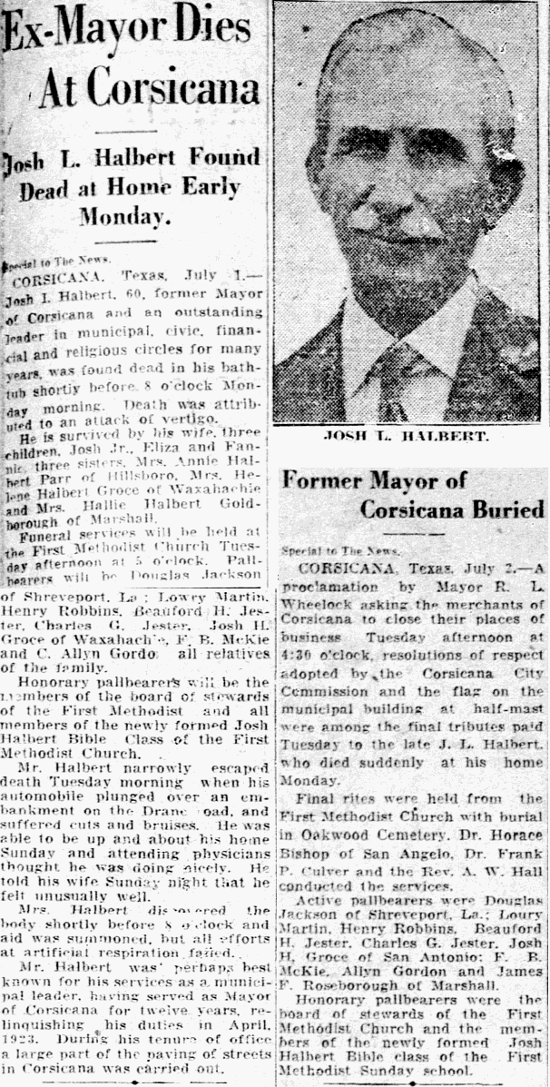 Josh L. Halbert, 60, former Mayor of Corsicana and an outstanding