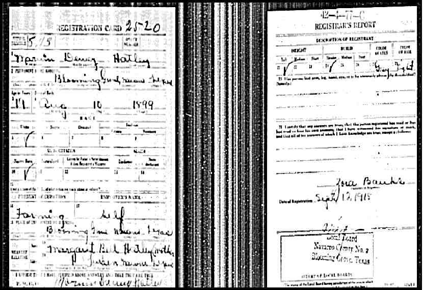 Marvin Dewey Hatley's WWI Draft Registration Card