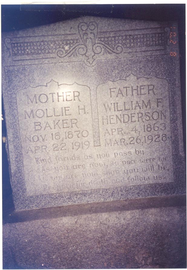 William and Mollie (Baker) Henderson are buried at Old Chatfield Cem.