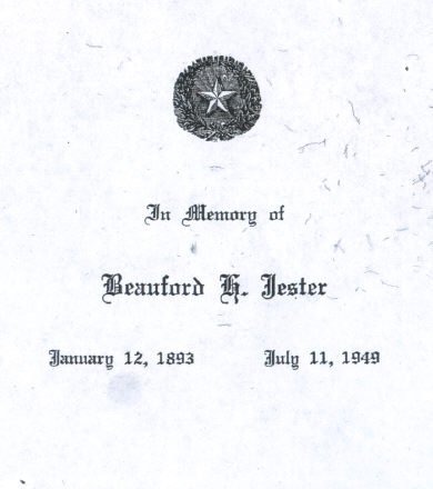 Texas Governor Beauford Halbert Jester Funeral Program