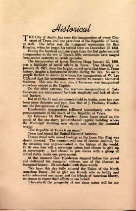 inauguration to the eve of Texas's 50th, ceremonies have ranged