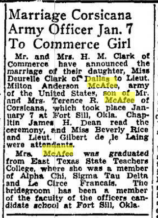 MILTON M'AFEE HAS GRADUATED FROM FT. SILL OFFICERS CAMP