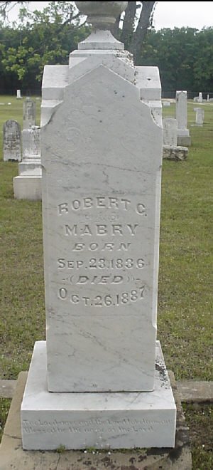 Robert Caldwell Mabry died on 26 Oct 1887 in Navarro County, Texas. He was