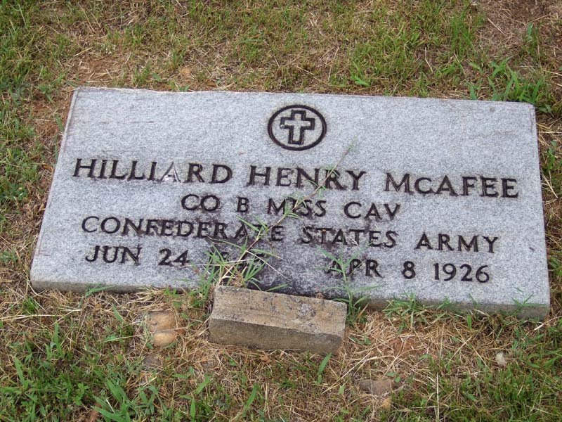 Hugh served in the Civil War as a Private in Company B Unit 11 Perrin’s Mississippi Calvary. His oldest son, Hilliard also served in this same unit. (Hilliard