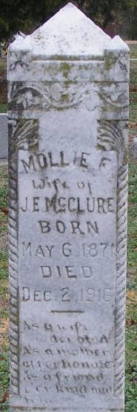 Note: John Edward McClure's wife Mollie, 6 May 1871-2 Dec 1916, is buried at