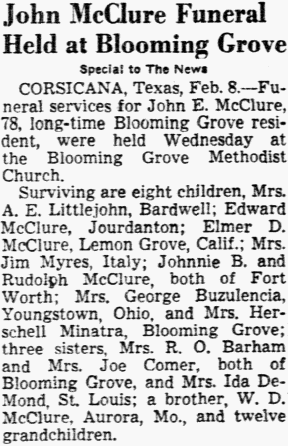 Italy; Johnnie B. and Rudolph McClure, both of Fort Worth; Mrs. George