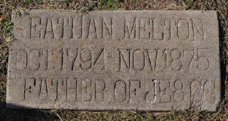 Ethan Melton Tombstone Photos A couple of weeks ago, I went out with David Malone (gg grandson of Ethan) to the old Melton family cemetery near Dresden -- with permission of the land owner, David's uncle, Grover Stewart Melton. We cleared a path to all the known headstones. I thought you might be interested in using a couple of shots of Ethan's headstone on your website -- which is quite remarkable, I might add.