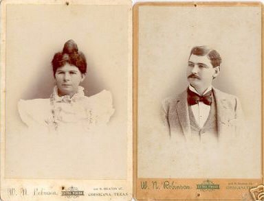 Photos marked: Mattie & Bratton Miller Taken by W. N. Robinson, Corsicana, Navarro County, Texas