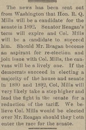 W. H. Atwell, Dallas: “Your father, Senator Mills, was my friend