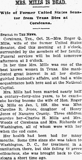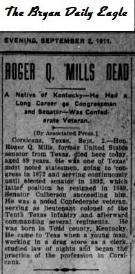 the death of this famous Texan. Senator Mills' death was not