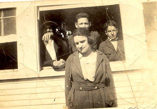 students in the window are: L to R: Unidentified, Mid Tyner, Joe