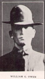 Galloway Owen is the son of C. C. Owen of Purdon. He was born near Purdon, December 16, 1893, and was educated in the public schools of this community. July 23, 1918, he entered the United States Service with Battery B, 127th Field Artillery, 34th Division, training at Camp Travis, San Antonio. September 25, 1918, he sailed for France and on January 30, 1919, received his discharge from the service. History of Texas World War Heroes - World War 1