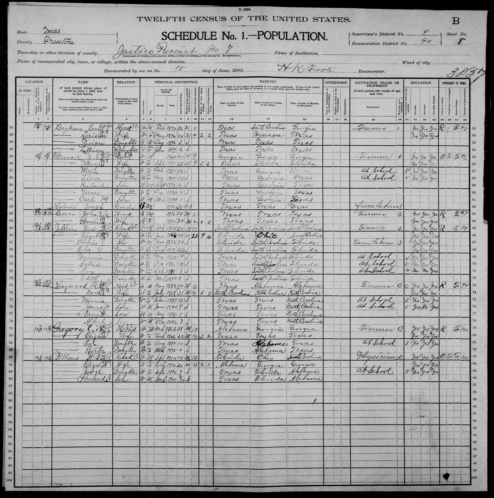 Census - Freestone County at age 3 mos. Garland died in McLennan Co., TX on